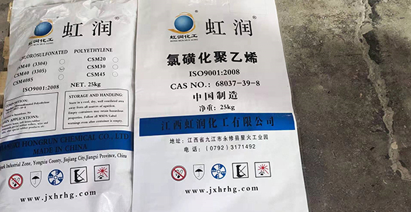 氯磺化聚乙烯為白色或微帶色彈性體。具有生膠的共性,并具有自身的特性。能溶于芳香烴及氯代烴中,在酮和醚中只溶脹而不能溶解。氯磺化聚乙烯的化學(xué)結(jié)構(gòu)鍵完全飽和,因而硫化膠有優(yōu)異的耐臭氧,耐大氣老化,耐化學(xué)藥品,抗離子輻射和色安定性,較好的物理機(jī)械性能,耐熱老化性,良好的耐熱及耐低溫,阻燃及耐磨性能,和良好的電絕緣性能等。